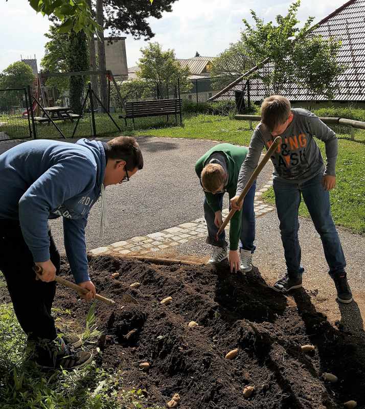 Die Nöki-Gruppe der 3ab zauberte eine äußerst schmackhafte Erdäpfelsuppe. Mit großer Hingabe wurde Gemüse gewaschen, geschält, geschnitten und schließlich die Suppe gekocht. Den Riesentopf konnte die Gruppe natürlich nicht alleine verspeisen, deswegen wurde sie am nächsten Tag den anderen Schülern bei der gesunden Jause angeboten.